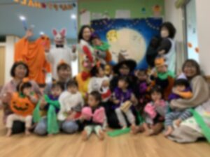 10月31日は、ハロウィンパーティーでした🎃🎈みなここ保育園に魔女と仲間たちがご来園〜🧙‍♀️ハロウィンの独特な雰囲気にちょっぴりドキドキする子、仲良くなりたくて近寄って話しかけに行く子、それぞれが楽しめたハロウィンパーティー💓元気な「トリックオアトリート!!!」の合言葉が響き渡っていましたよ🌟